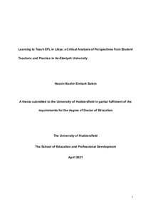 This research investigated the Libyan EFL student teachers and their lecturers’ perceptions about the teaching practice course using the interpretive research paradigm. It examines perceptions about the focus of the teaching training in general and the teaching practice course specifically. It also discusses perceptions about the challenges and the difficulties that student teachers and their lecturers encountered during the implementation of teaching and learning within the teaching training application. Finally, it studied the perception of the student teachers about the effectiveness of the teaching practice course in enhancing their teaching performance during practicum.